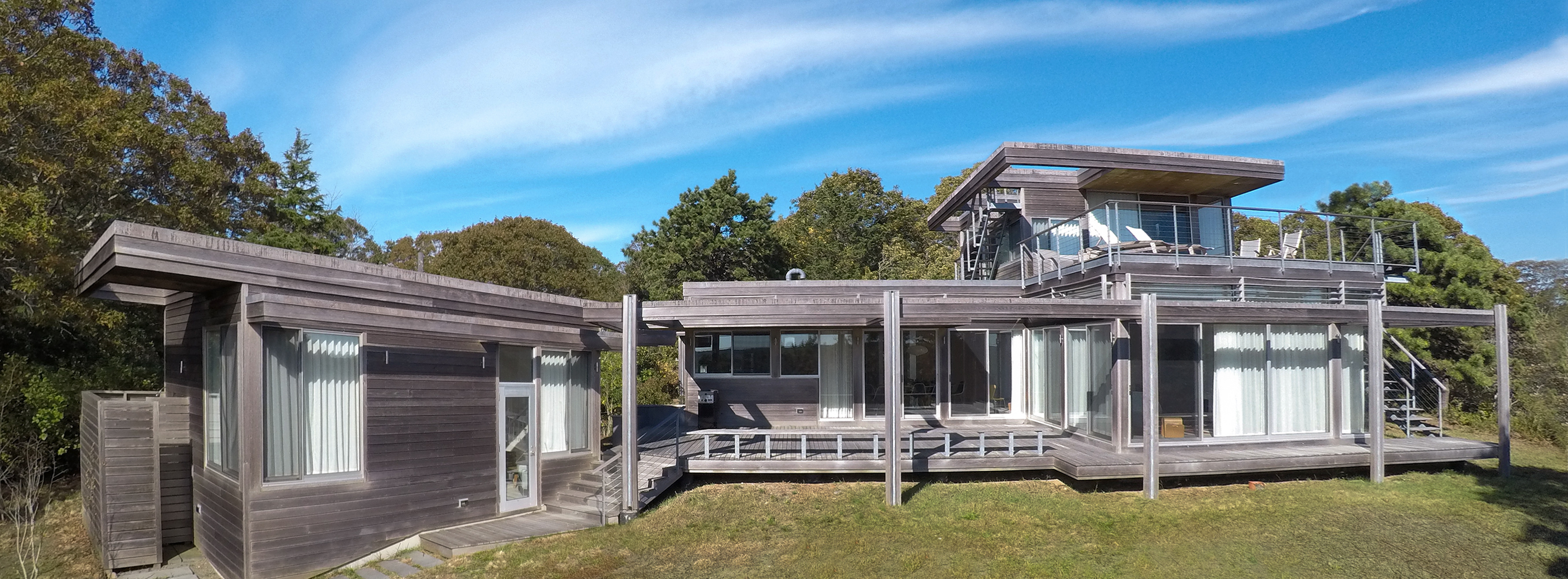 Welcome to the Pamet House Truro. This stunning vacation home offers a unique modern living experience. Designed by architect Maryanne Thompson, the home is perched on a hill overlooking the Pamet Harbor. Floor-to-ceiling windows open the living space to multi-level decks, inviting light and Cape Cod breezes to effortlessly sweep through the home. Currated modern furniture, a chef's dream kitchen, luxurious sleeping suites and beaches within walking distance make this a perfect Cape Cod retreat. There is also a separate studio with a bedroom, kitchenette, and living space.